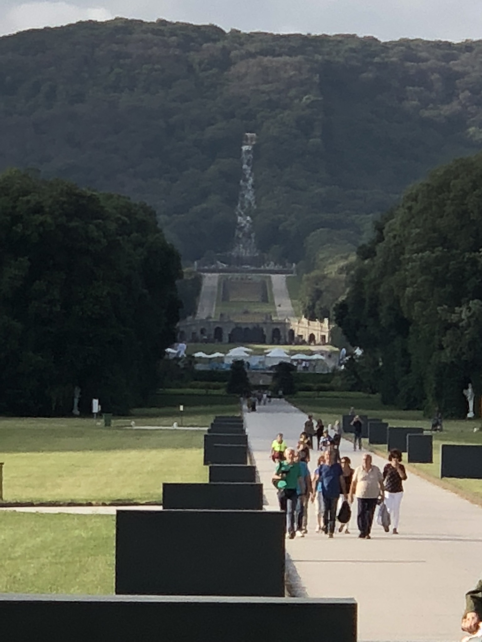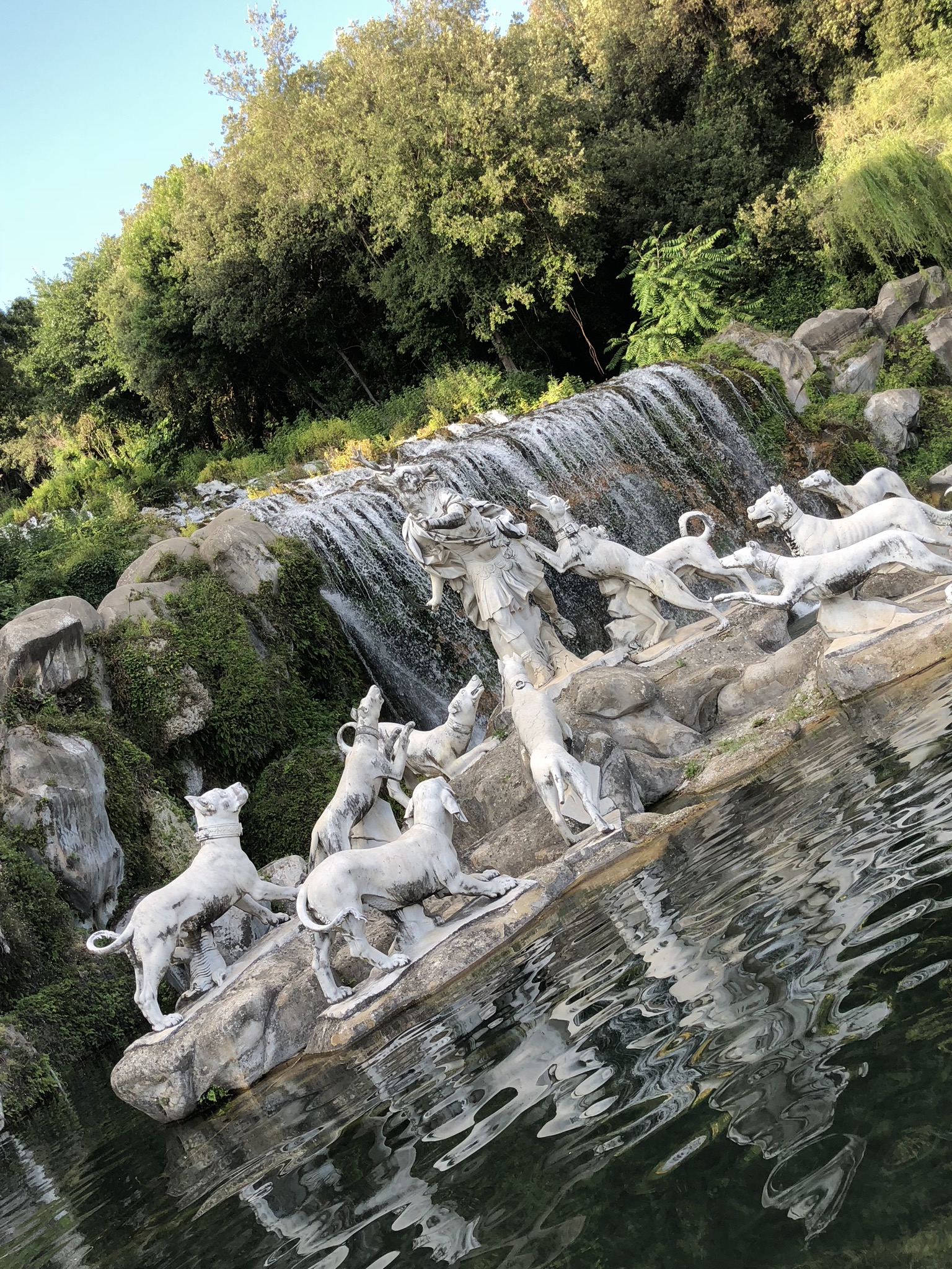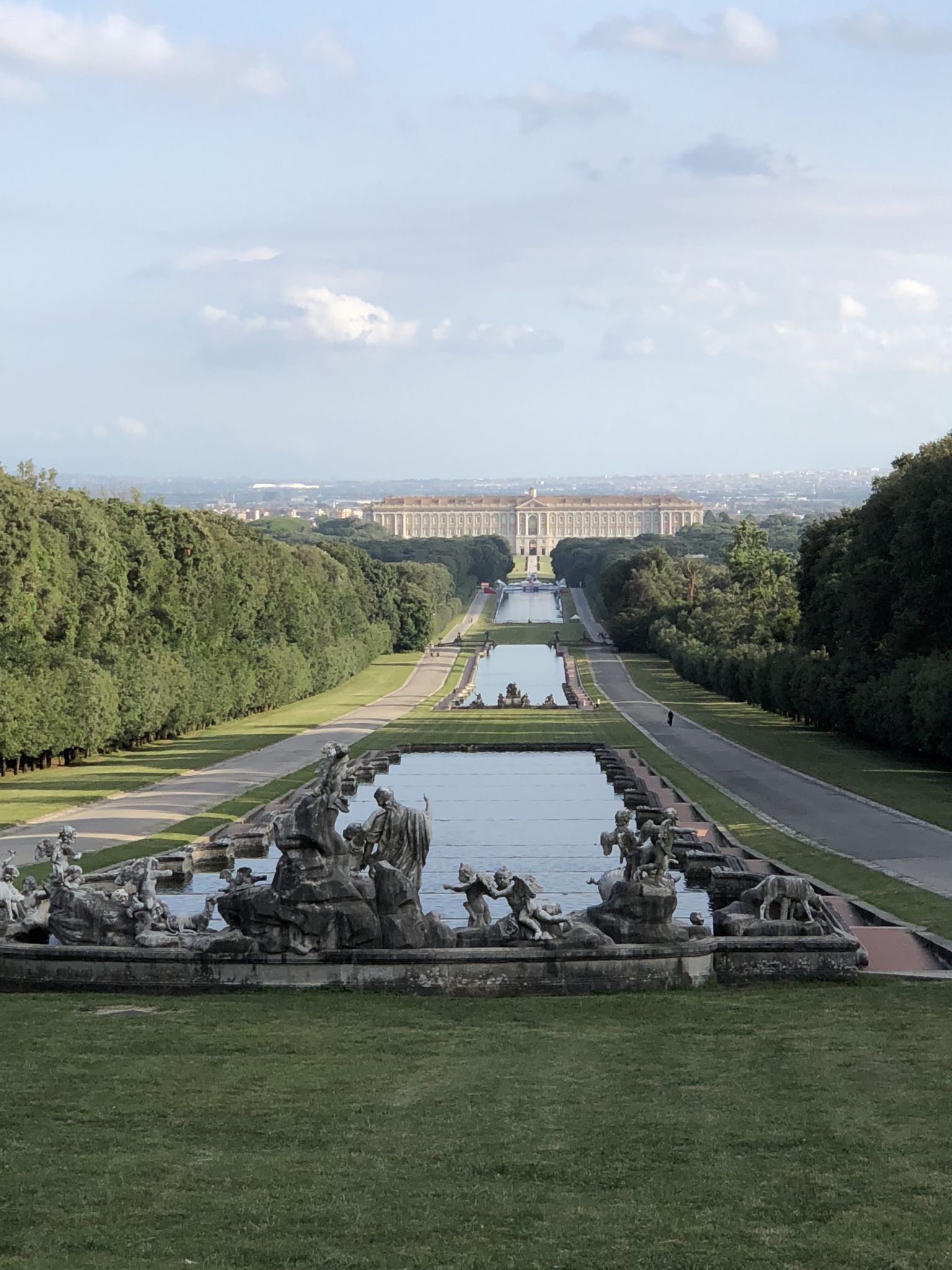 Per potere raggiungere l’ultima enorme fontana, di Diana e Atteone, alimentata dalla cascata dal Monte Taburno, bisogna percorrere 3 chilometri, ma è disponibile un servizio di navetta: eccovi un’idea della distanza dalla Reggia.